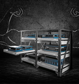 HW1500高位即時可調模具架單托盤承重1500公斤以內,早期用于美國航空發動機及軍工領域,常用于存放槍械、航空發動機等重型產品,也可安裝在野外基地和方艙內,實現快速部署。近年逐漸在模具及軌道交通等領域得到廣泛應用,實現高密集柔性化存儲。